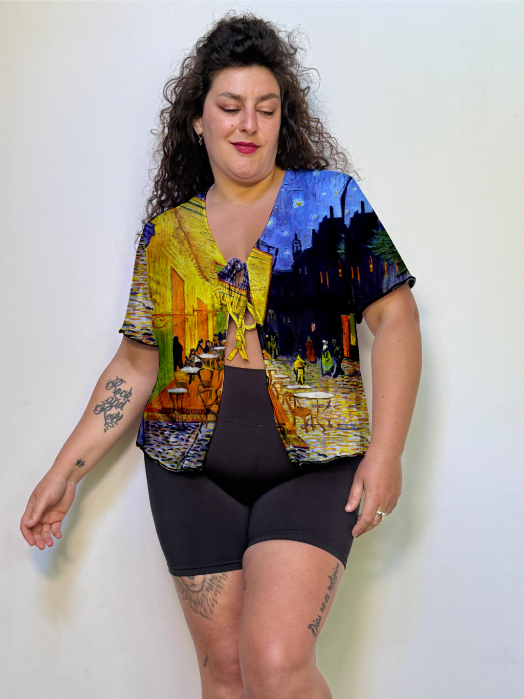 blusa MC terraza de cafe x la noche