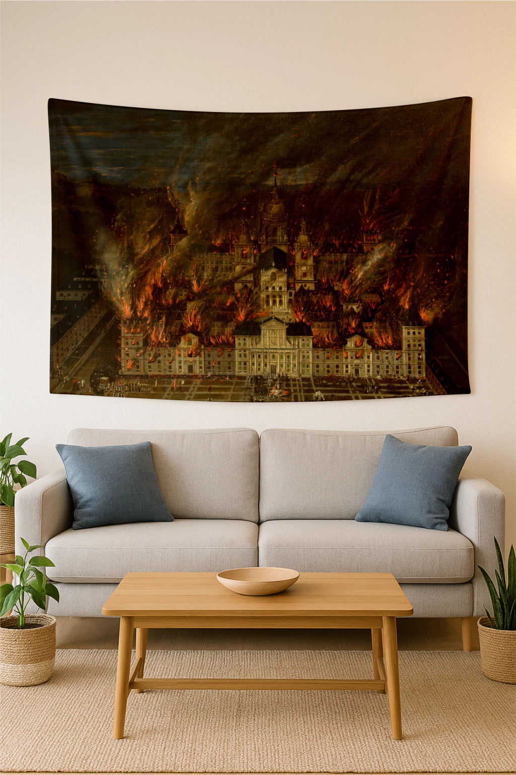 Tapiz 100% poliester, en la parte de atras tiene dos ganchitos con tela para colgar.